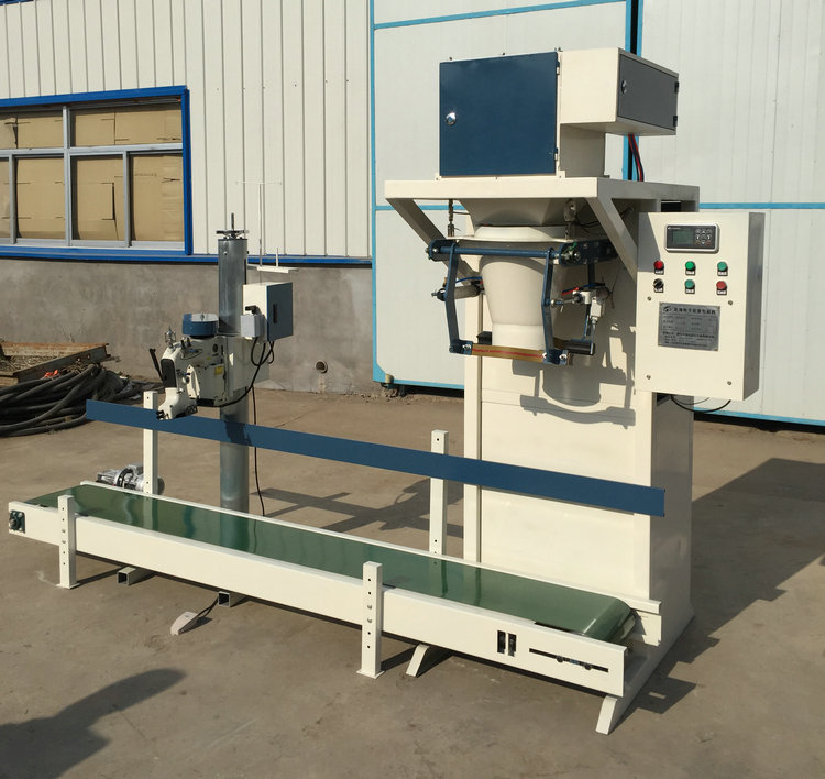 機(jī)輸送至縫包機(jī)進(jìn)行縫包—→成品輸出